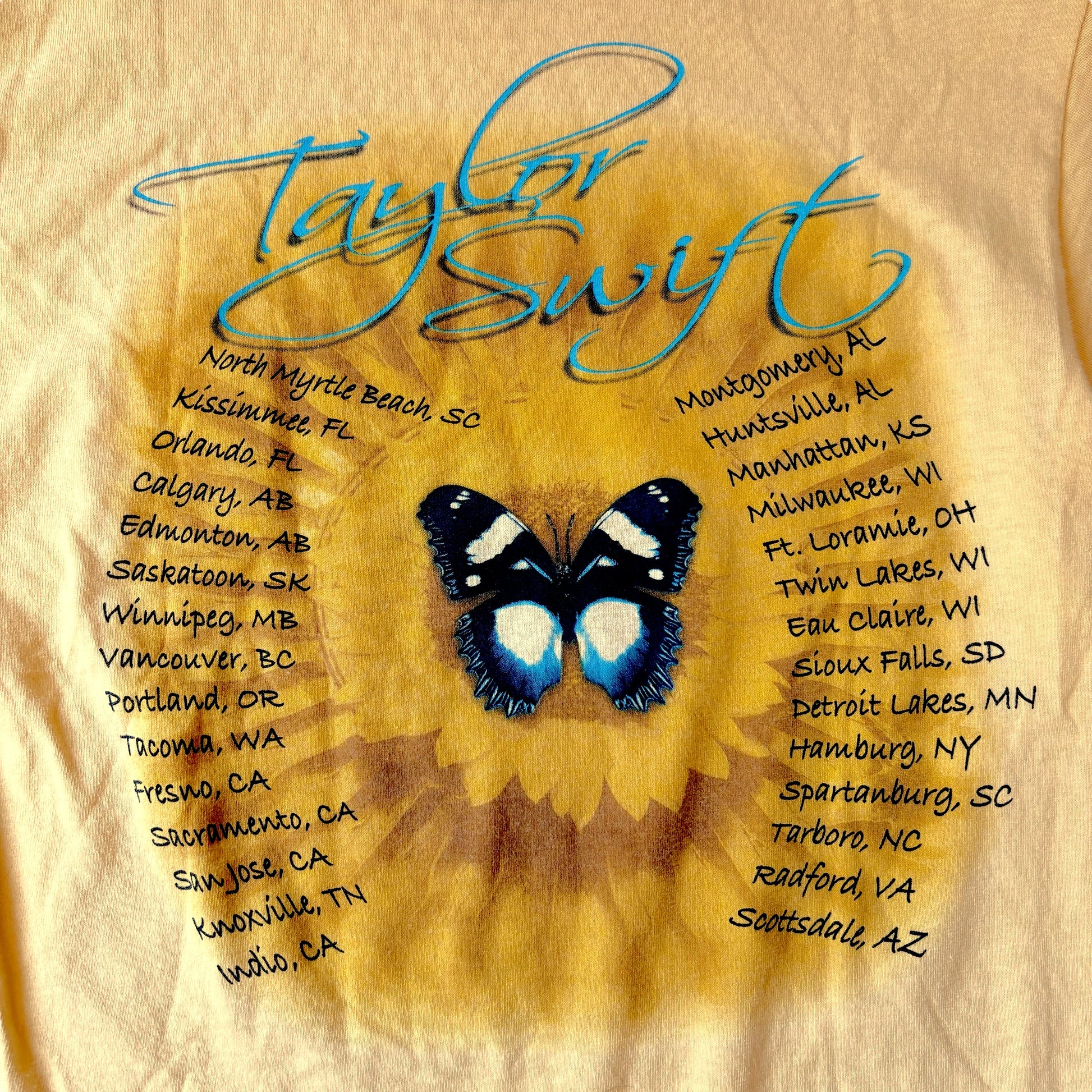 Rare "First edition / First printing" of official Taylor Swift tour merch featuring winter/spring/summer dates from her pre-headlining era. Because it was produced prior to the release of her breakout album Fearless and its subsequent tour (Taylor's first solo headlining effort), I consider this shirt to be an "XRC" before her official "RC" (rookie).